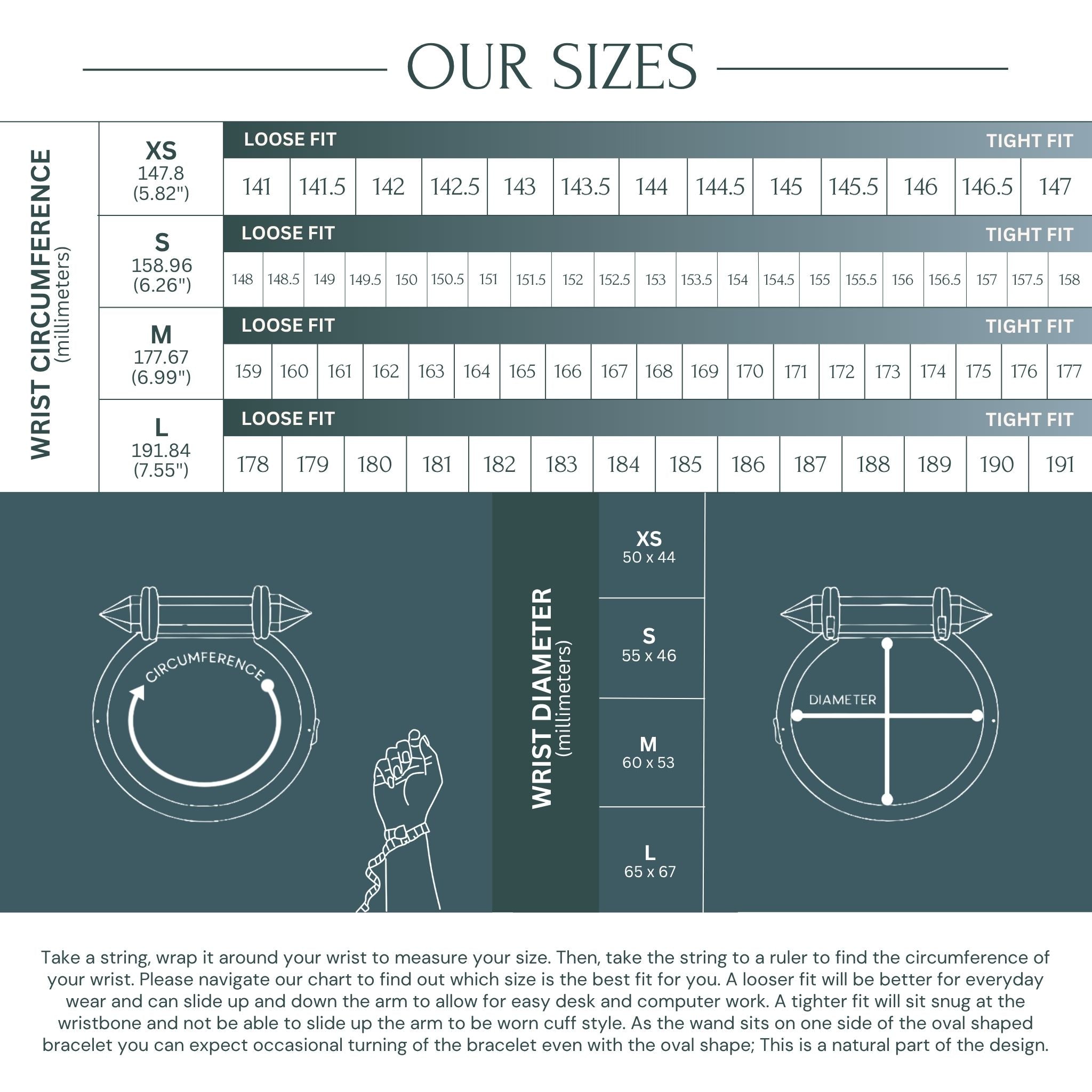 For a looser fit and everyday wear the bracelet can be moved higher on the forearm so it’s not knocking at the wrist bone. When you are doing activities such as working at a desk the crystal wand is easier to move out of your way.