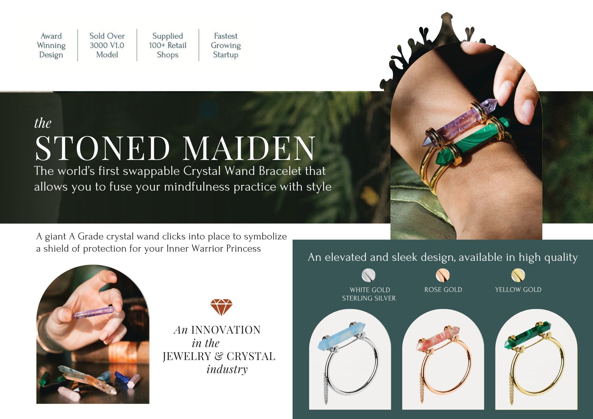The Stoned Maiden in Solid Sterling Silver (925) with anti-tarnish Rhodium plate.